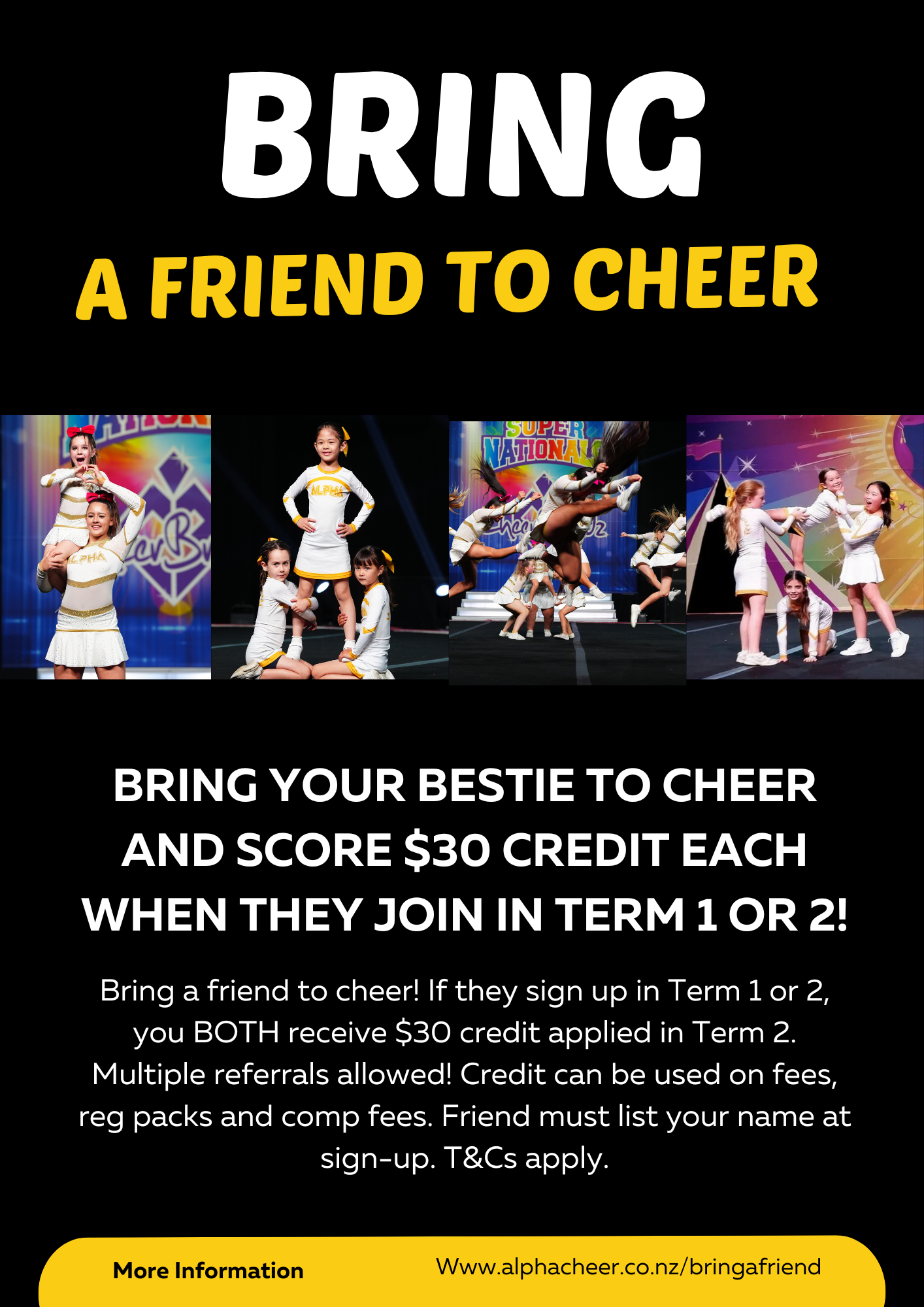 Cheer is always better with friends, so weβre excited to launch our Bring a Friend to Cheer promo for Terms 1 & 2!